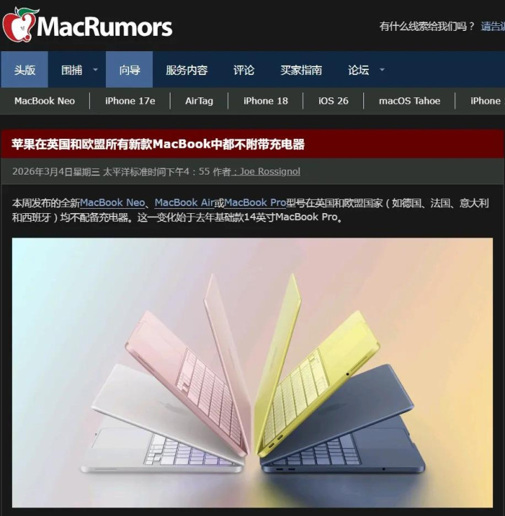 然则据外媒MacRumors报谈,开云app官方在线入口苹果刚刚发布的这三款新MacBook,在英国和欧盟地区销售时均不再随附充电器。
