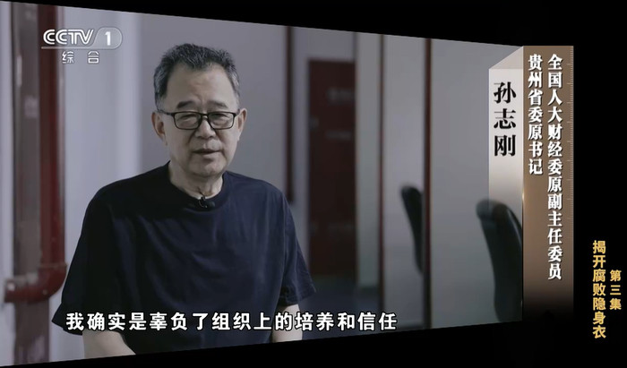 唐一军之后,孙志刚在同一集中出镜忏悔。孙志刚,贵州省委原书记,2023年8月被立案审查调查,2024年2月被开除党籍。