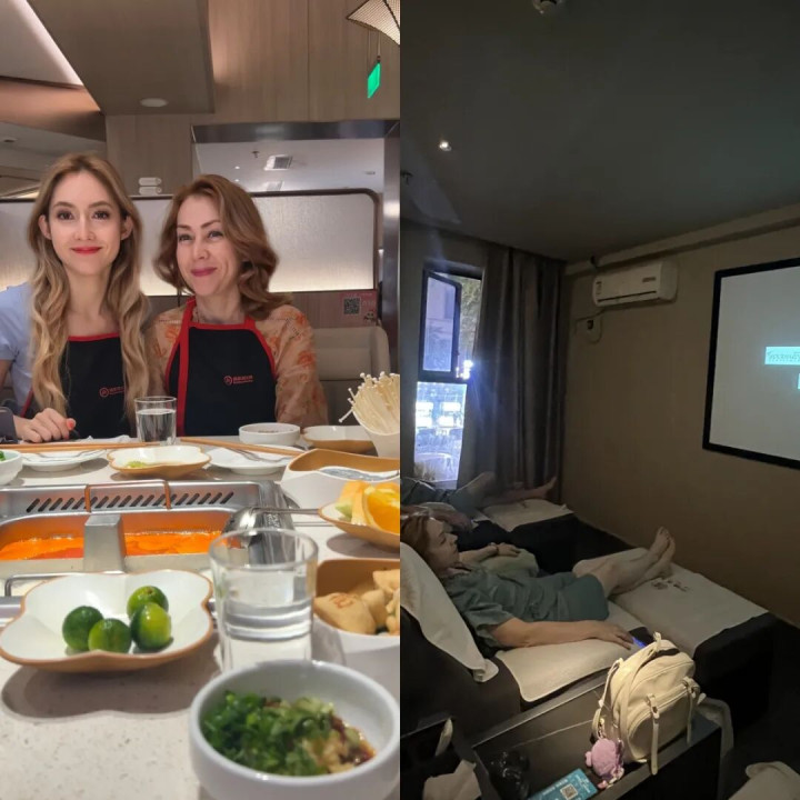 Amy还带家人体验了火锅和推拿按摩。(图/受访者供图)