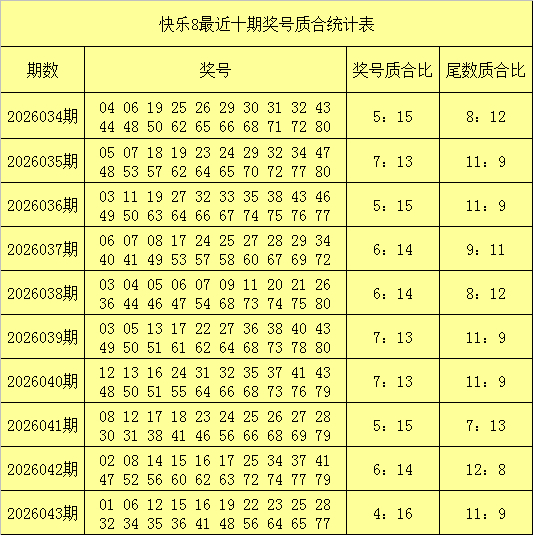 第九位:上期开出合数奖号25,奖号余数5为质数余数,最近20期该位质尾奖号奖号出现14次,合尾奖号出现6次,质尾奖号走势较热,最近10期第九位奖号余数质合比为7:3,当今质尾号码长入开出4期,本期堤防质尾号码再出,参考号码42。