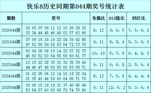 奇偶比分析:第044期历史同时奖号奇偶总比为53:67,偶数号码相对较热,旧年同时奖号奇偶比开出9:11,本年第044期展望奇数走热,关心奇偶比11:9。