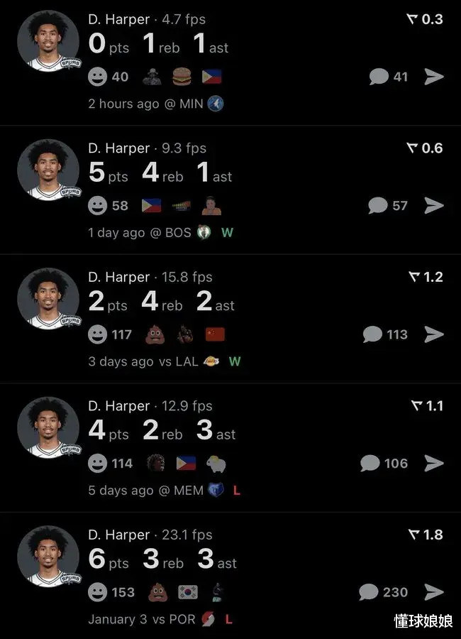 现在终于明白马刺在拥有这么多后卫的情况下,之前还说想要交易得到一个有经验的后卫,确实是需要哈。看看今天马刺这群后卫们的表现,多少有点浪费文班的努力了。好像自从圣诞大战之后,马刺这群后卫啊,就不会打球了。