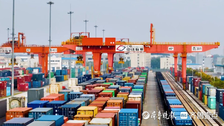 纵横延伸的铁路网络,昼夜不息的滚滚车轮是上合示范区中欧班列高质量发展的缩影。截至目前,上合示范区已常态化开行22条国际班列线路,通达上合组织和共建“一带一路”23个国家54个城市,构建起东联日韩、西接欧亚、北达蒙俄、南至东盟的国际物流通道,累计到发中欧班列超5400列,常态化开行家电、轮胎、商品车、粮食等特色专列,并为海尔、海信、玲珑、奇瑞等企业开行定制化供应链专列,服务外贸企业超7000家。