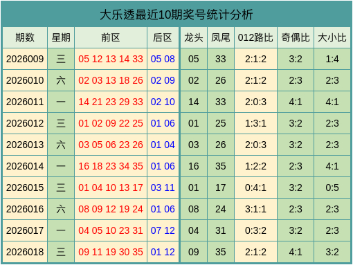 上期回顾:大乐透第2026018期:前区09、11、19、30、35;后区01、12,其中前区012路比为2:1:2,奇偶比为4:1,后区开稀零数号码01、12。