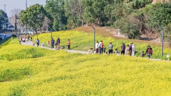 今年夏天,良渚街道启动环境整治工程,清理杂乱菜地、深耕整地,专门引入了耐寒的冬性油菜品种进行种植。经过数月培育,去年12月中下旬,油菜花悄然绽放。元旦期间,盛花期开启,这片油菜花迅速成为热门的打卡点。